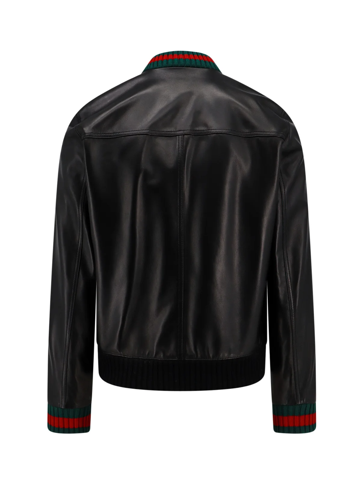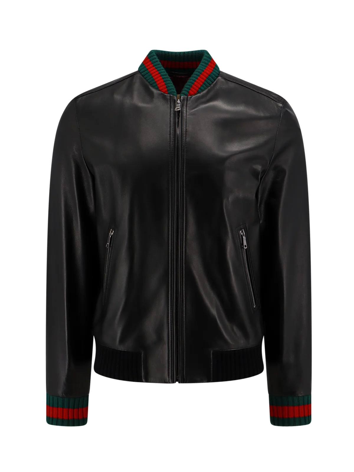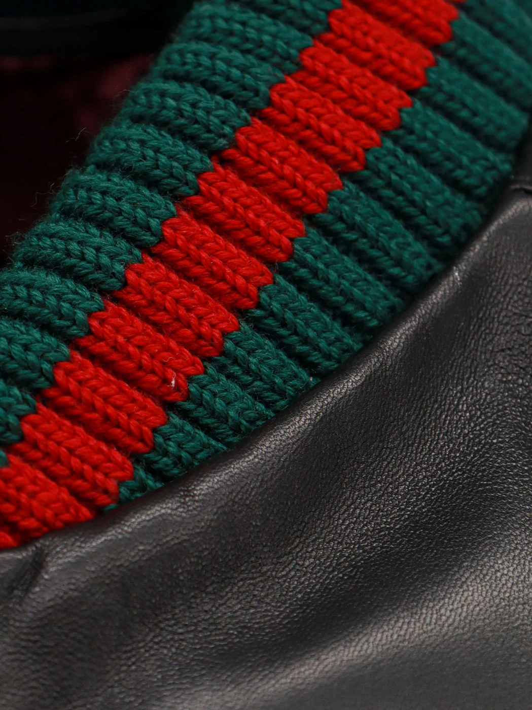 The ribbed collar, cuffs, and hem with green-red stripe detailing evoke a timeless, luxury-inspired vibe. The smooth front zipper and side zip pockets offer both functionality and flair. Inside, the soft viscose lining ensures lasting comfort, while the classic fit complements every body shape without compromising on movement.